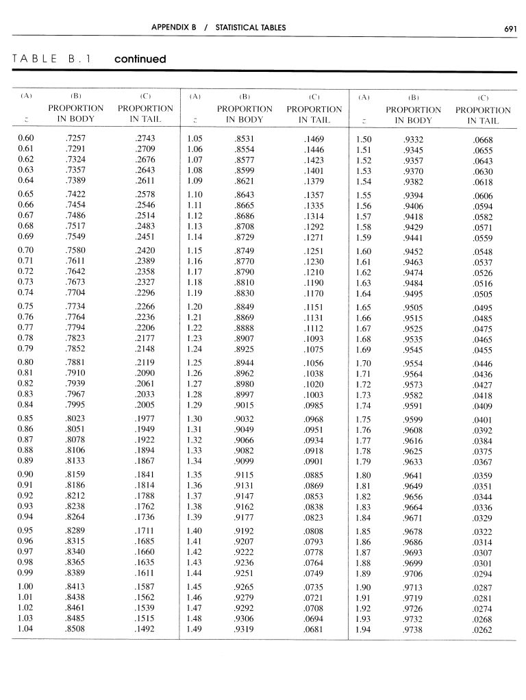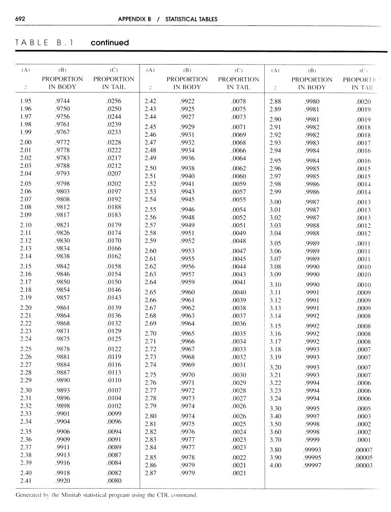 -Les probabilités de la courbe normale (scores Z)