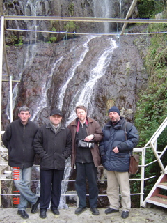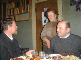 At the end of January we spent four days in the southwest Georgian province of Ach'ara. Our host was Gogi Goradze, who hails from the village of Chikuneti, which is in the Mach'axela Valley, only a few kilometers from the Turkish border. We stayed with Gogi's relatives, interviewed some of them on life in Mach'axela during Soviet times -- being a border zone, access was nearly impossible, and the locals were closely watched by the Russian troops stationed at the Turkish frontier. We visited an old mosque (jame) with extraordinarily beautiful woodwork in the neighboring town of Chxut'uneti, which was converted into a museum in the Soviet period. The next day we explored the main valley of Upper Ach'ara, stopping in the village of Chanchkalo for a banquet with music and traditional dancing. On Sunday the 30th, we went further up the valley to Xulo, where we met Avtandil Bolkvadze, a local government official and former student of Paata's. Avto took us on a tour of the town, introduced to the local priest Father Mirian, and of course, more banqueting took place.